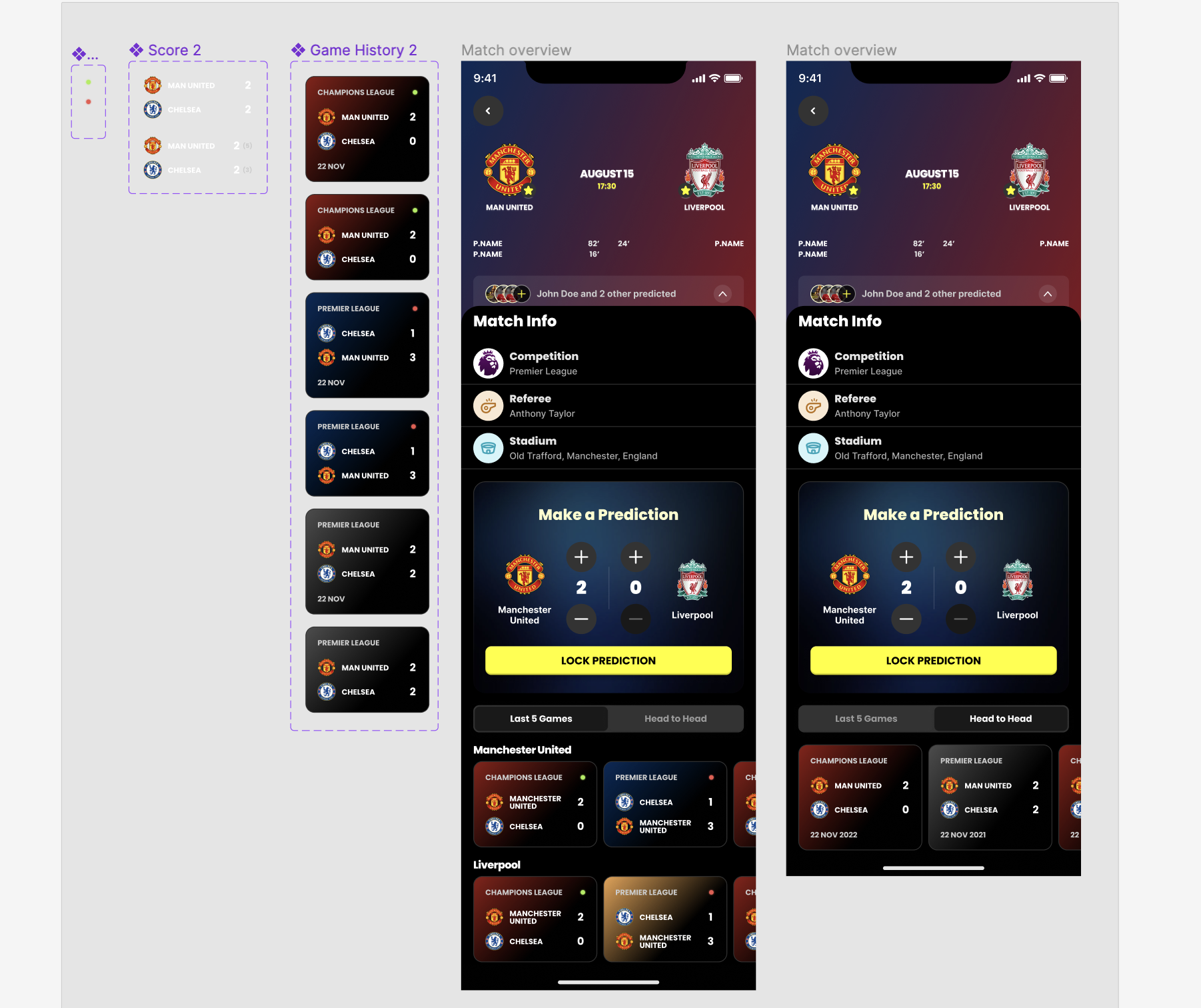 To bring the Last 5 matches feature to life, I conducted extensive research on user preferences and industry best practices. For this, I analysed different football platforms and studied how they presented recent match results. Using this knowledge, I developed an intuitive interface that shows teams' latest results, gives users quick access to crucial information and allows them to keep track of performance.